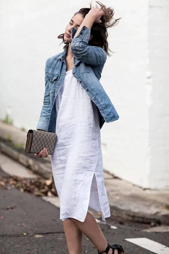 2. 包包搭配:包包的搭配,可以选择与裙子颜色相近或者形成对比的颜色。简约的款式更能凸显牛仔连衣裙的时尚感。